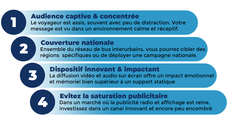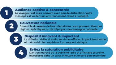 Contrairement aux médias traditionnels où votre public peut zapper, ignorer une bannière ou sauter une pub en ligne, notre support offre une attention forcée et qualitative.