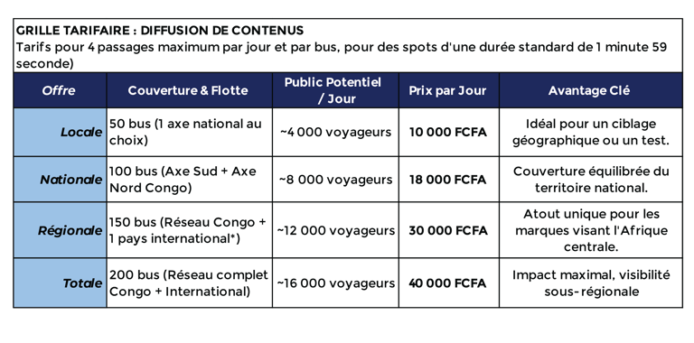 Publicité ciblée dans les bus reliant les grandes villes du Congo.